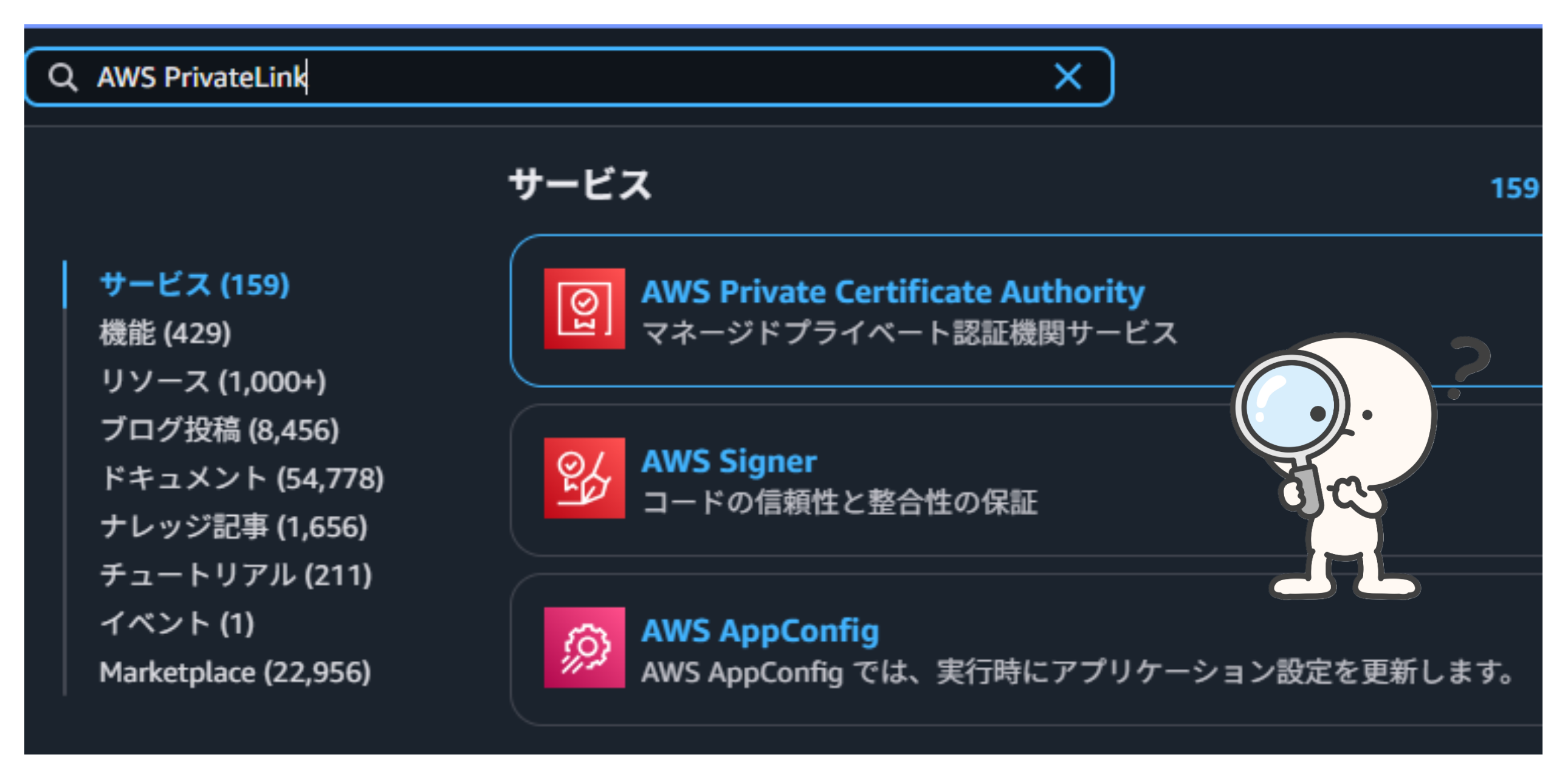 しかし、いざ構築してみようとするも AWSのサービス一覧にPrivateLinkが存在しない…